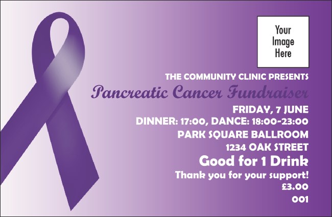 Every penny helps to find a cure. Use the Purple Ribbon Drink Ticket to raise more funds at your upcoming benefit. Customise its nine text lines to your fundraiser in minutes. Printed on quality stock, your drink tickets will look and feel great in hand. Satisfaction guaranteed. Expect your order to arrive fast—we turn most around in one business day.